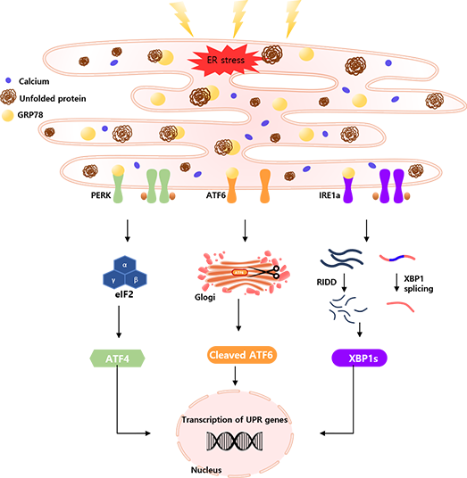 There are approximately 100 trillion cells in our body, and each cell has an endoplasmic reticulum (ER). The ER exists within the cell and produces proteins and cholesterol, and it is involved in moving the produced proteins to the required area. “ER stress” refers to the state 1) when proteins exceeding the ER's capacity to process enter the ER, reaching the limit in folding proteins and creating three-dimensional structures, and 2) when calcium depletion within the ER causes ER dysfunction, and it is responsible for cancer development, anticancer treatment resistance, and disease.